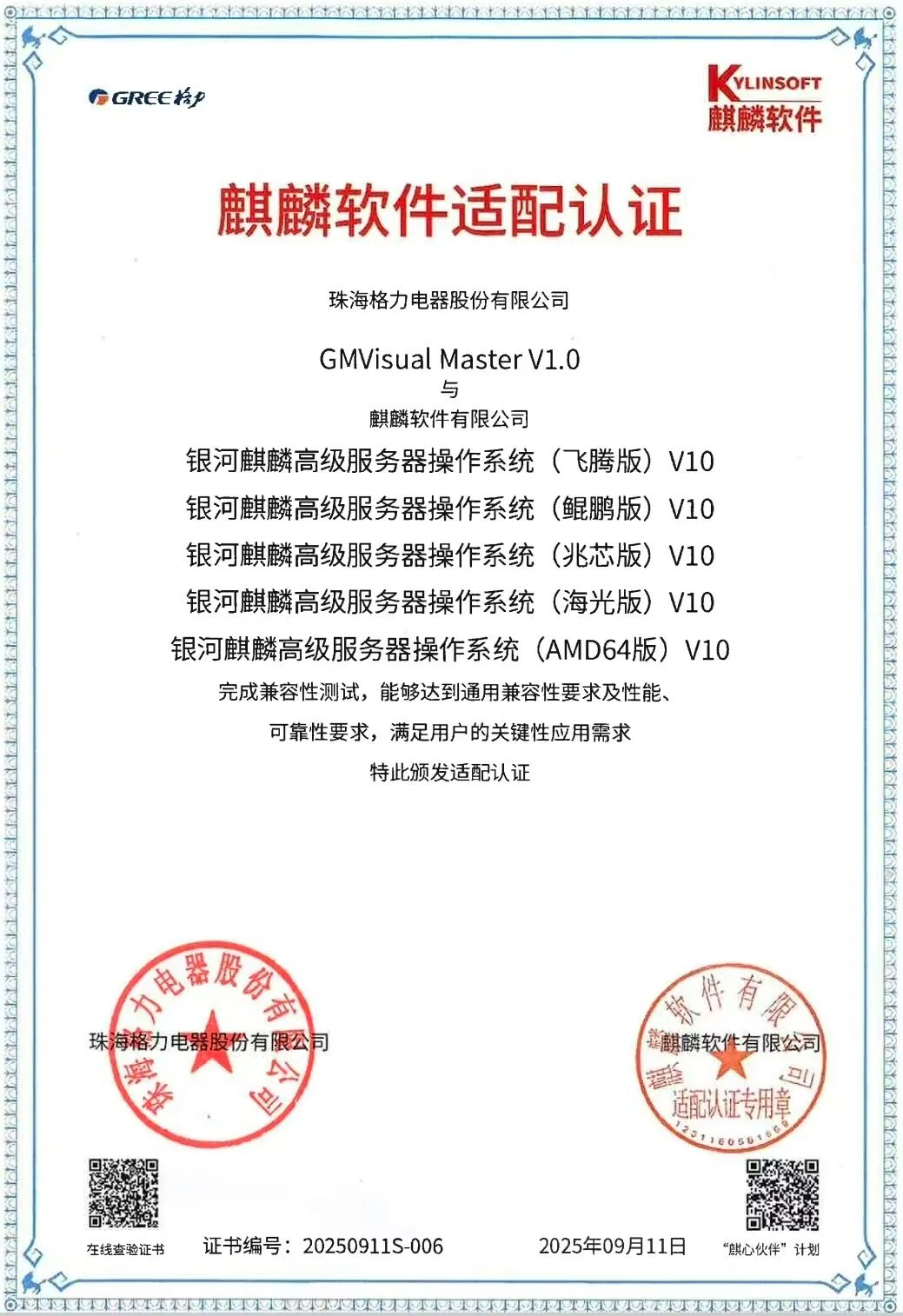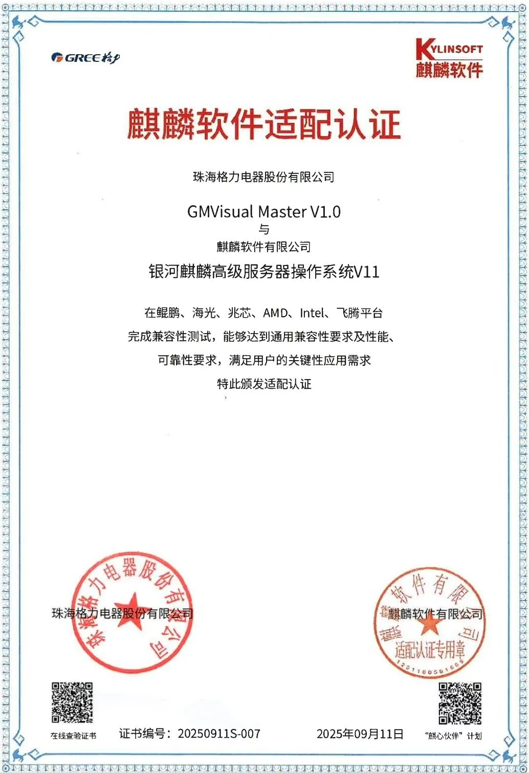 格力泰山楼宇智控系统获银河麒麟高级服务器操作系统V11认证
